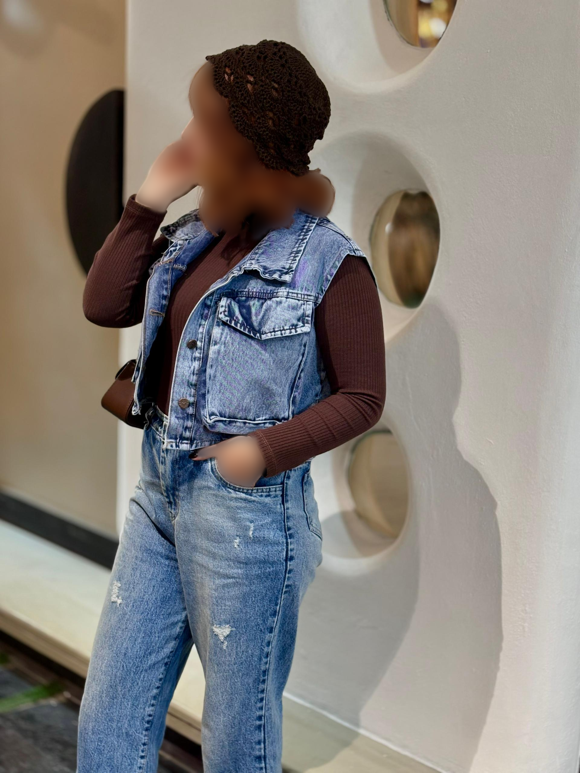 کراپ وست جین زنانه مدل پاکتی